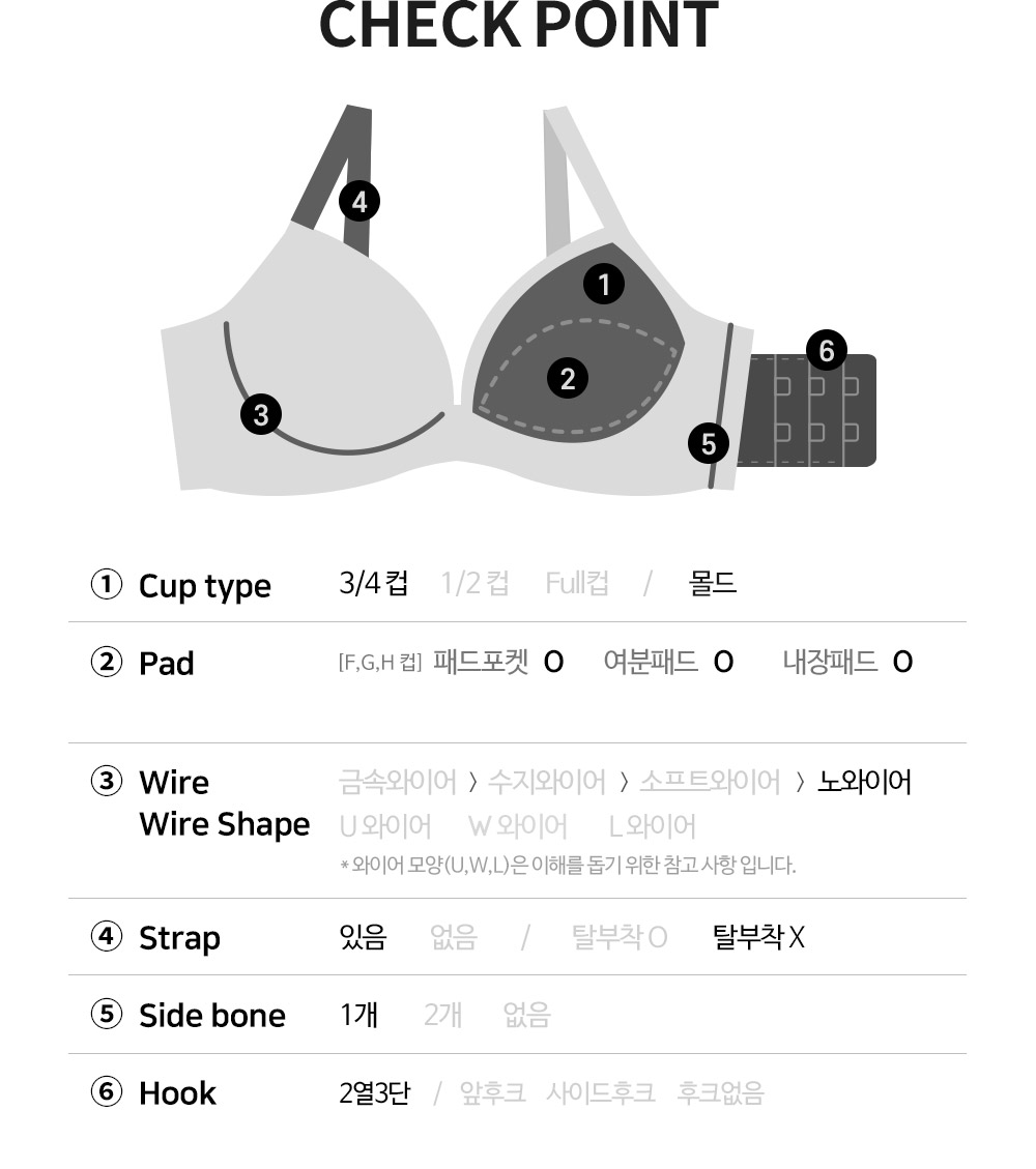 | 제품 소재(%) | [LACE] 나일론 90% 스판덱스 10% [MESH] 나일론 : 85%, 스판덱스 : 15% [CUP BODY] 코튼 : 100% | ||