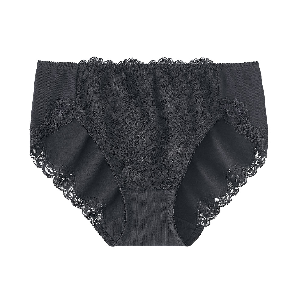 하이웨이스트 타입으로 힙 라인을 안정적으로 감싸주며, 레이스 디테일은 의류 착용 시에도 팬티 라인이 비치지 않도록 설계되어 매끄러운 실루엣을 연출합니다.